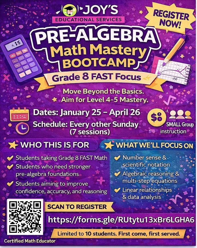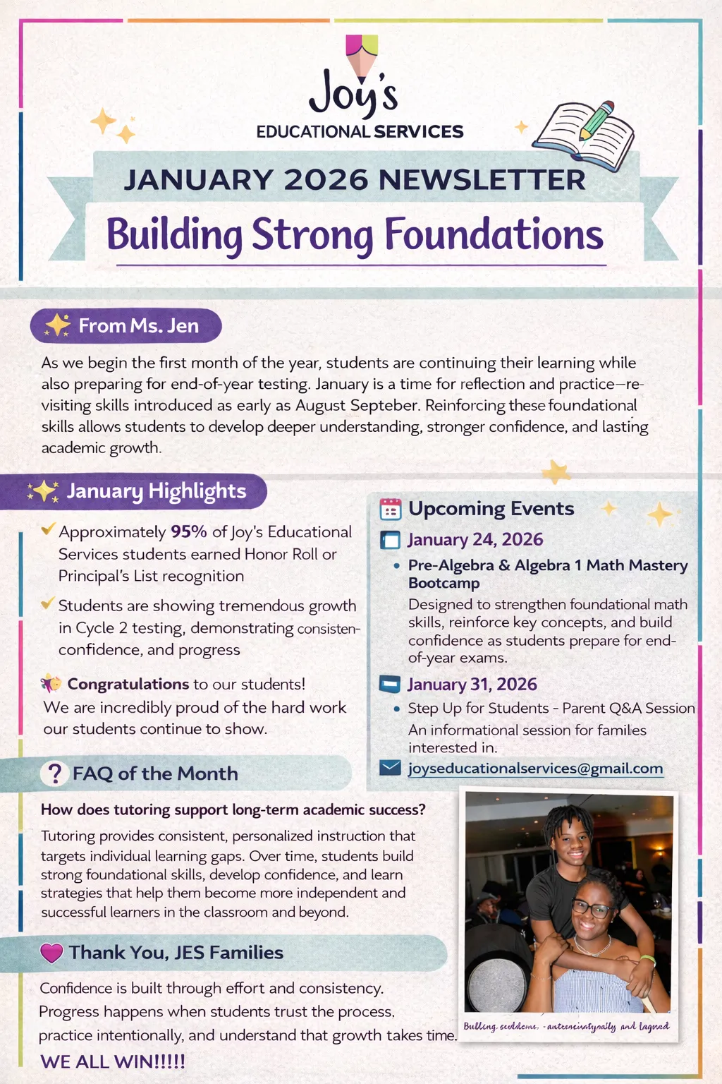 At Joy’s Educational Services, we make academic growth personal, flexible, and effective. Whether your child attends traditional school or learns at home, we’ve got the perfect plan to support their success.